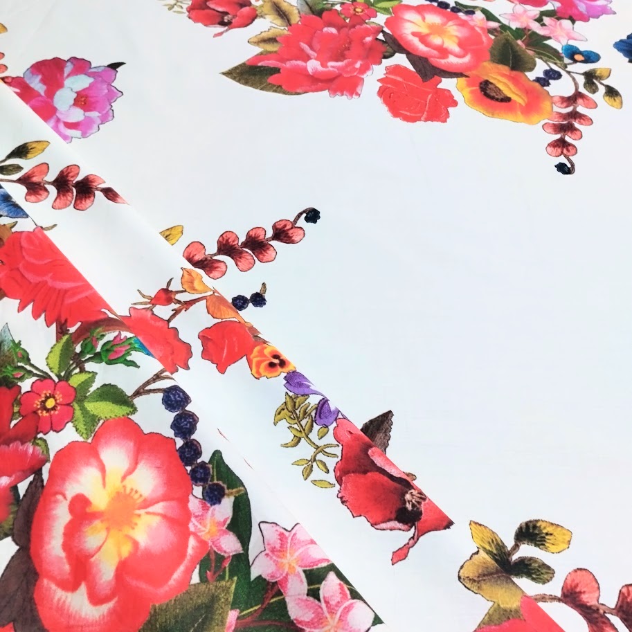 Gracias a su tacto sedoso y caída sostenida, el algodón satinado estampado es muy agradable al contacto con la piel. Es una tela resistente, de gramaje medio, que se adapta fácilmente al corte y confección. Su calidad se refleja en el acabado uniforme del estampado, que se mantiene vibrante tras los lavados y el uso prolongado.
