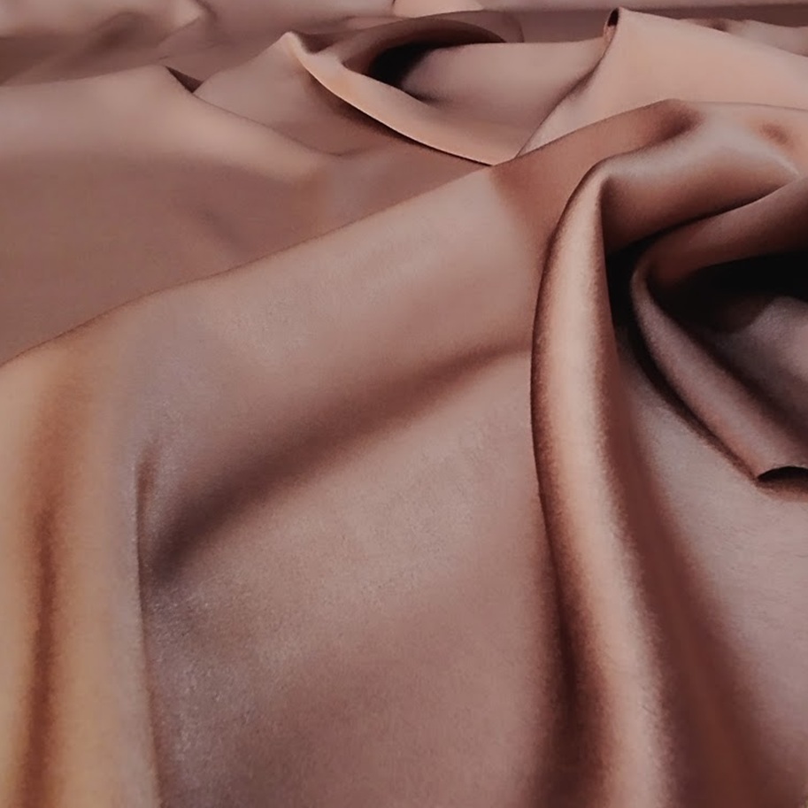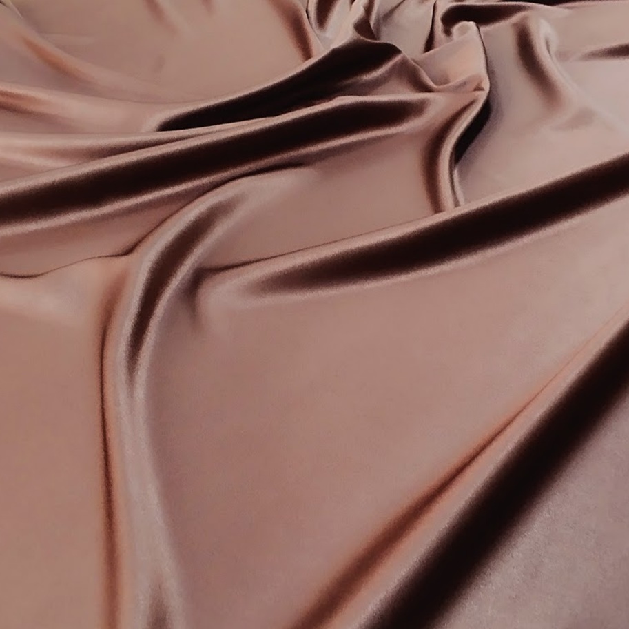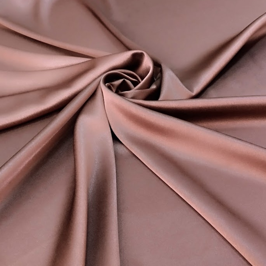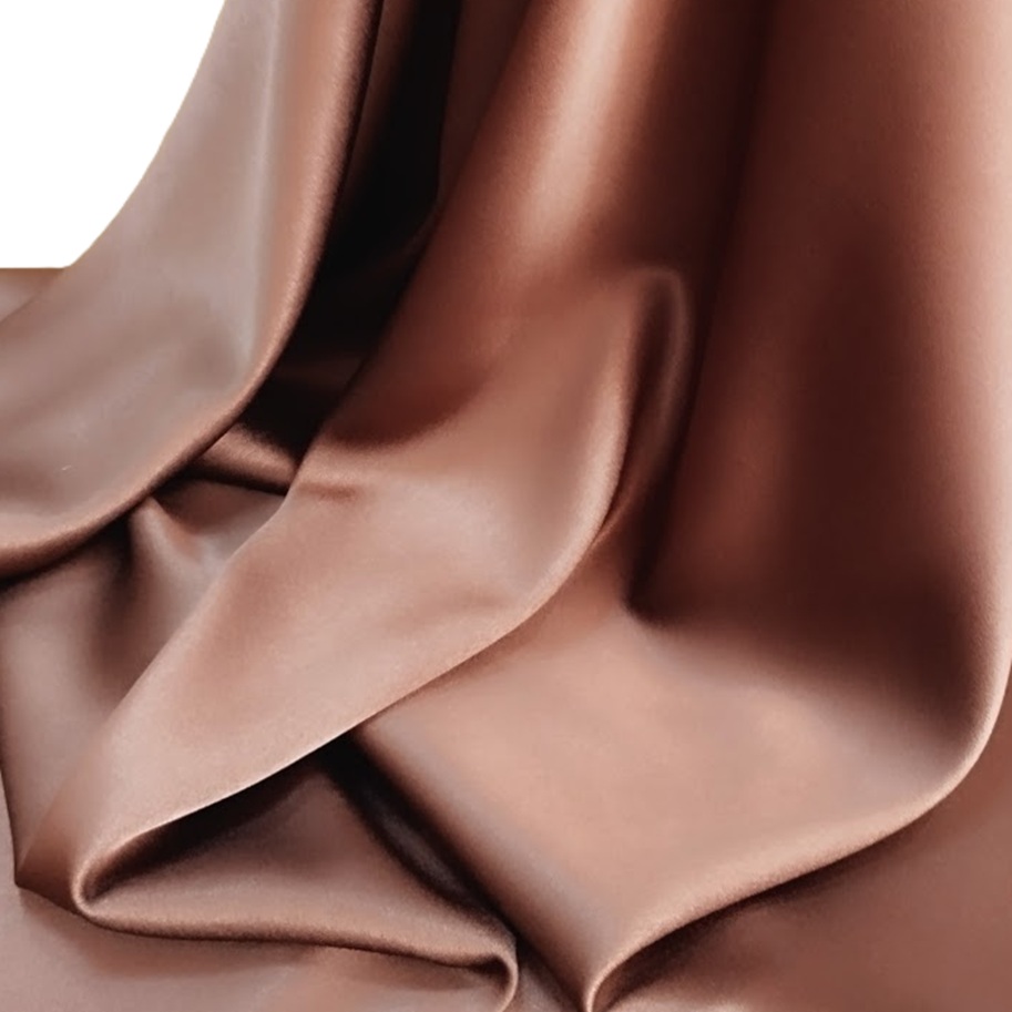 Sumérgete en la elegancia del Crep Satén Chocolate, una tela que combina la suavidad del satén con la textura ligeramente granulada del crep, creando una fusión única de sofisticación y carácter. Su tono marrón chocolate profundo añade calidez y distinción, mientras que su acabado satinado proporciona un brillo sutil y envolvente, ideal para diseños que buscan impactar sin estridencias.