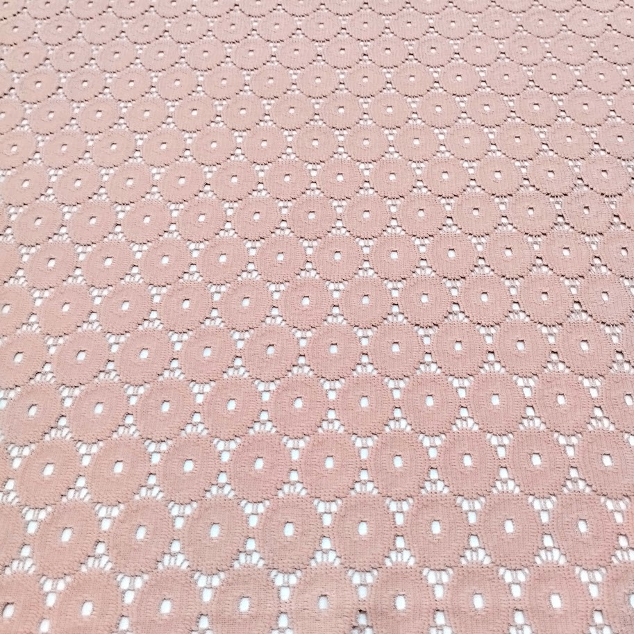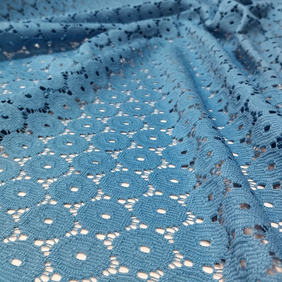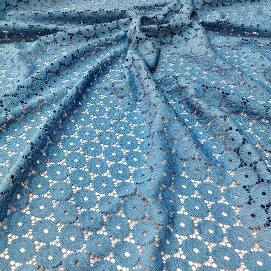 Este diseño de guipur destaca por su textura suave y sus rosetones de 2 cm conectados entre sí. Su acabado mate ofrece una estética natural y elegante, magnífico para prendas delicadas o detalles artesanales con personalidad.
