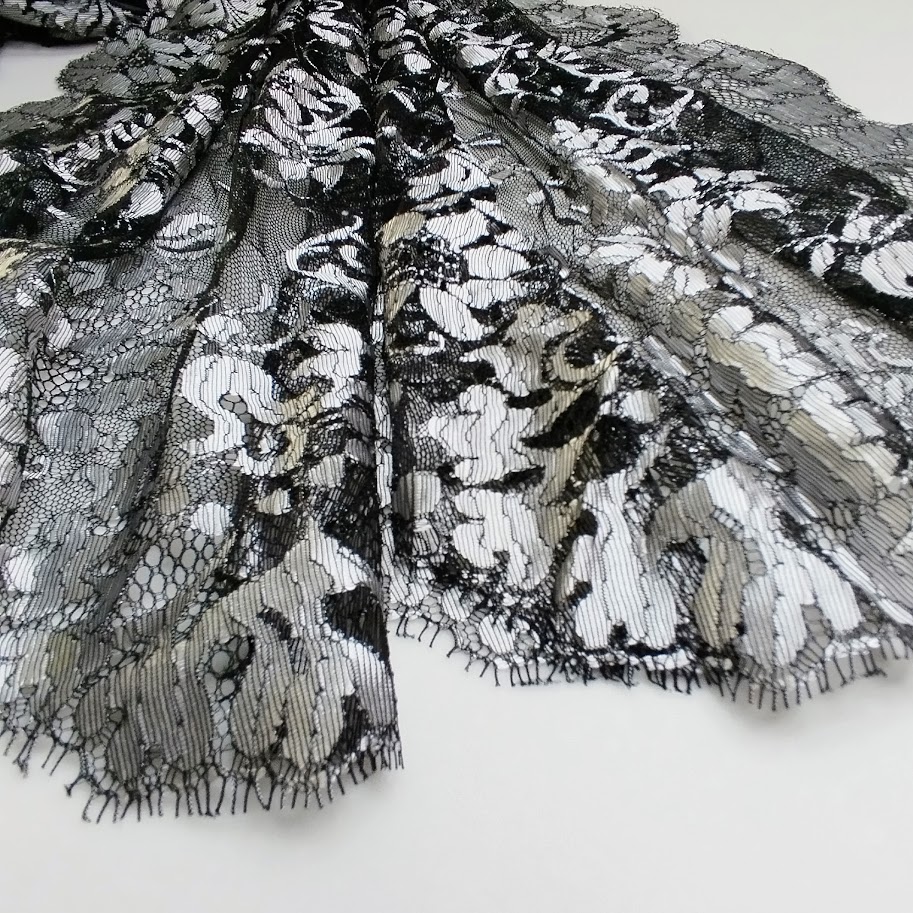 🖤 Mantilla Bordada a Máquina en Negro y Plata – Elegancia Sofisticada que Impacta