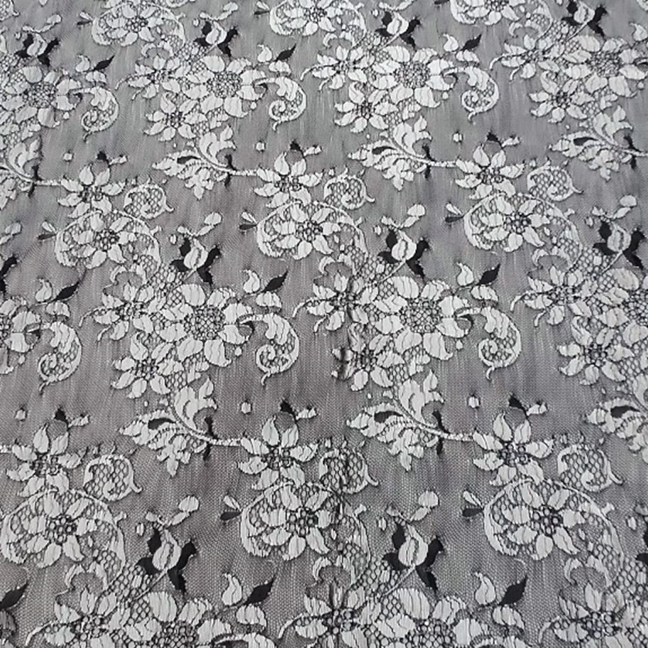 La mantilla bordada está confeccionada con un tejido de alta calidad compuesto por 80% poliamida, que proporciona resistencia, elasticidad y una textura ligera y transparente, y 20% lurex, un hilo metalizado que aporta un brillo plateado elegante y duradero en los bordados. Esta combinación garantiza una mantilla sofisticada, con un acabado brillante que no sacrifica comodidad ni durabilidad.