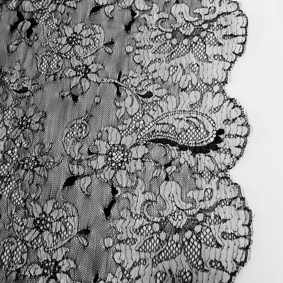 El negro profundo de la base se fusiona armoniosamente con los delicados bordados en plata, creando un contraste impresionante que aporta luminosidad y sofisticación. Por consiguiente, esta mantilla bordada resalta cualquier atuendo, ya sea un vestido formal o un conjunto más sobrio, añadiendo un toque de distinción que no pasa desapercibido.