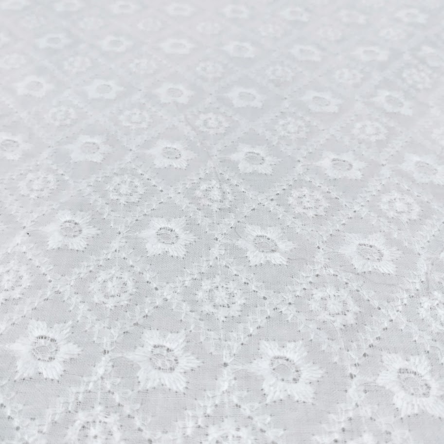 Esta versión liviana de batista bordada y perforada ofrece una alternativa aún más etérea y delicada para tus proyectos de costura. Con un gramaje más fino que la Tela de Batista Bordada «Ana», esta tela de algodón se caracteriza por su gran transpirabilidad, suavidad al tacto y un precioso bordado decorativo que realza cualquier diseño. Su estructura calada permite crear prendas que respiran, aportando frescura y estilo en partes iguales.