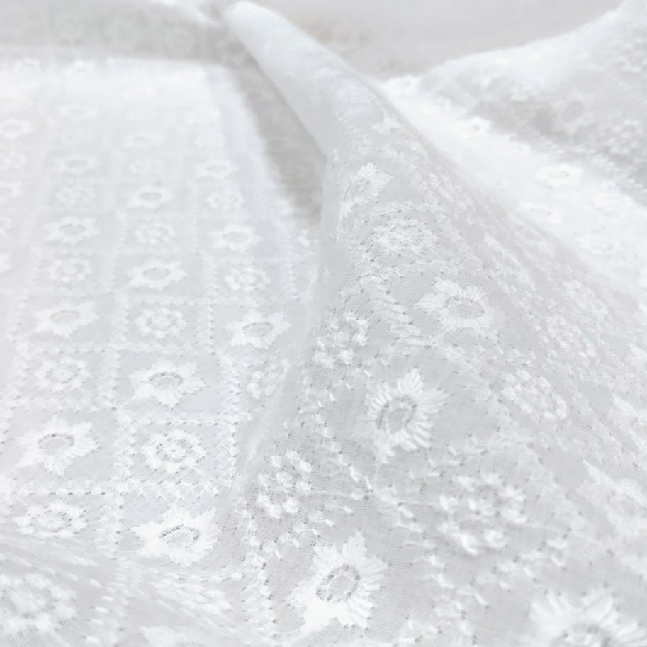 Tela de batista bordada y perforada liviana, ideal para moda boho, flamenca y prendas veraniegas. Suave, fresca y con encanto artesanal.