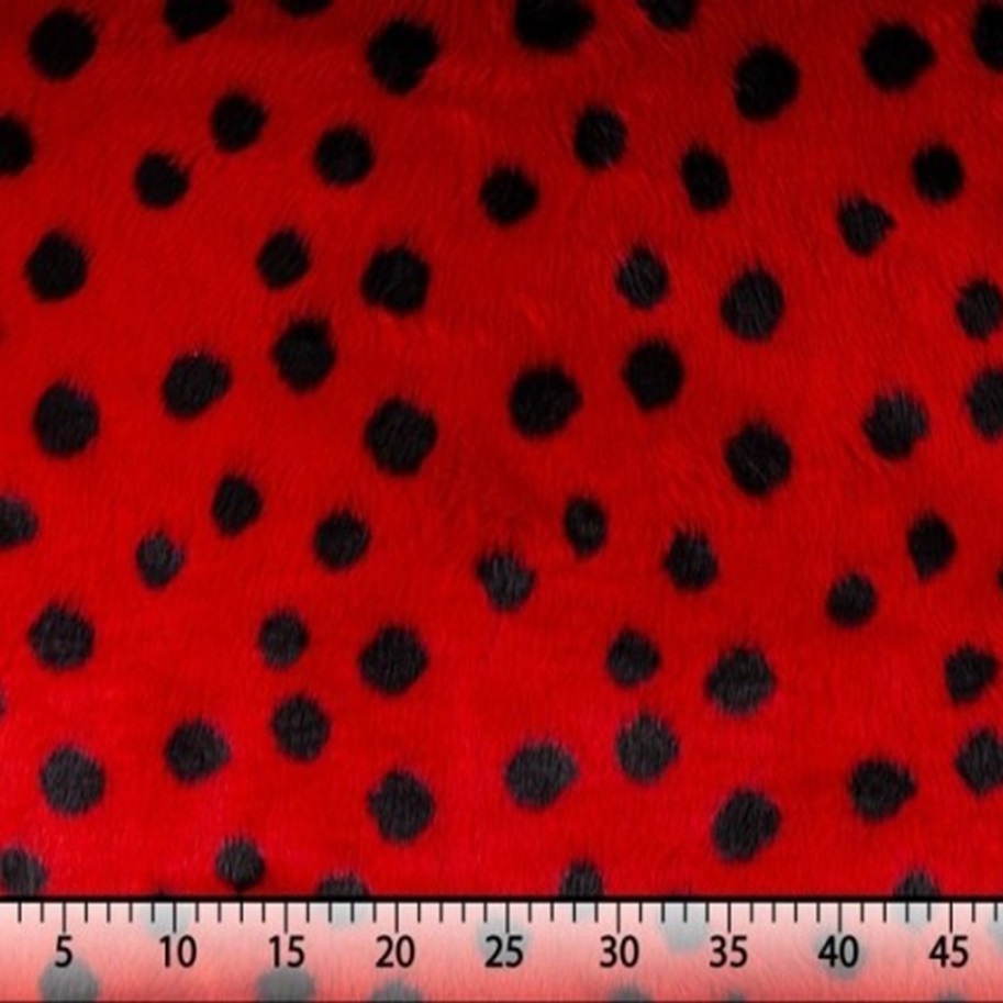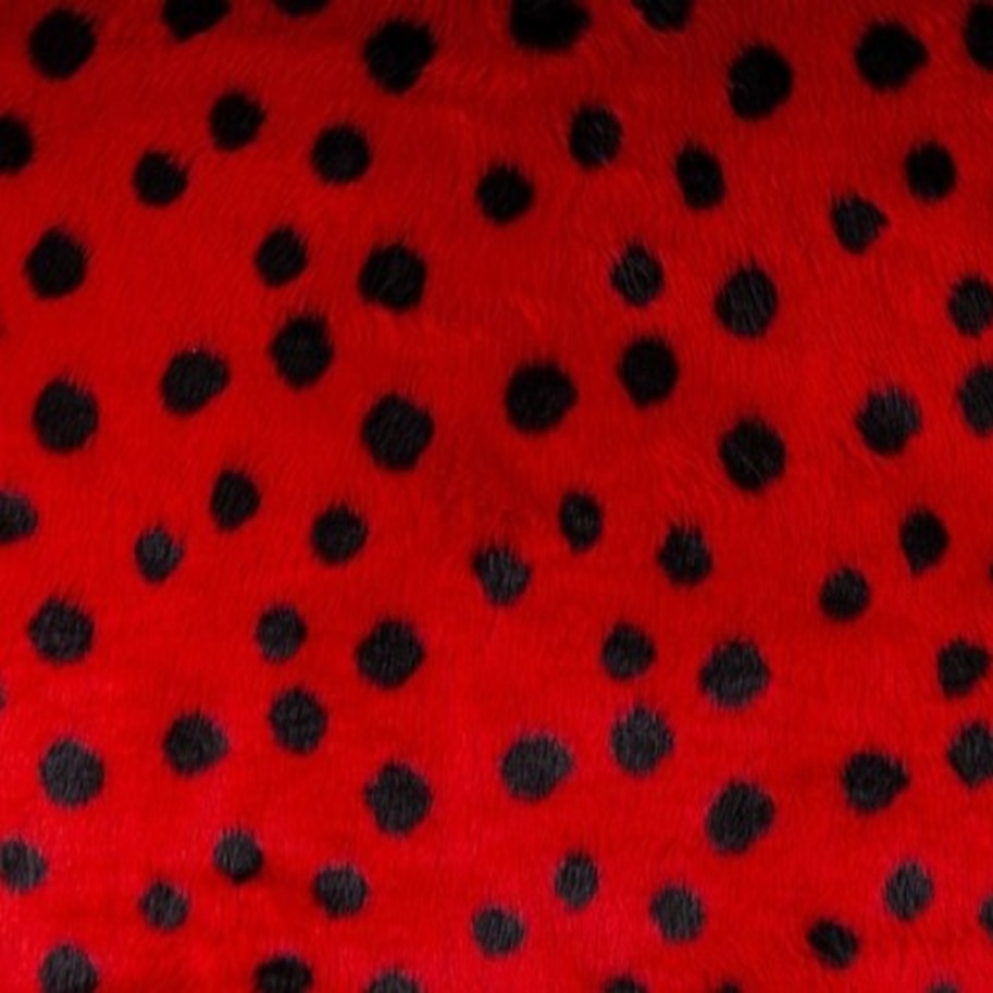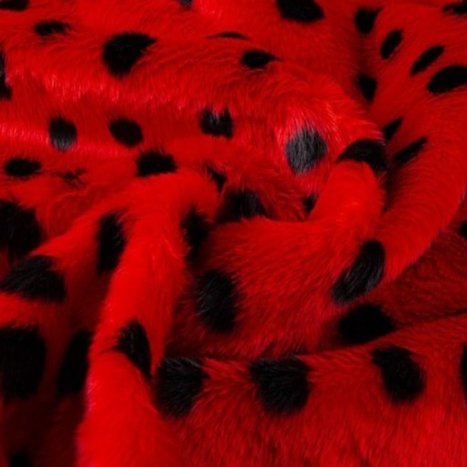 Si buscas una tela divertida, llamativa y llena de buen rollo, la tela de pelo sintético mariquita es una apuesta segura. Su diseño clásico de fondo rojo con topitos negros, inspirado en la mariquita, aporta un estilo alegre y reconocible que funciona a la perfección en proyectos creativos y festivos.