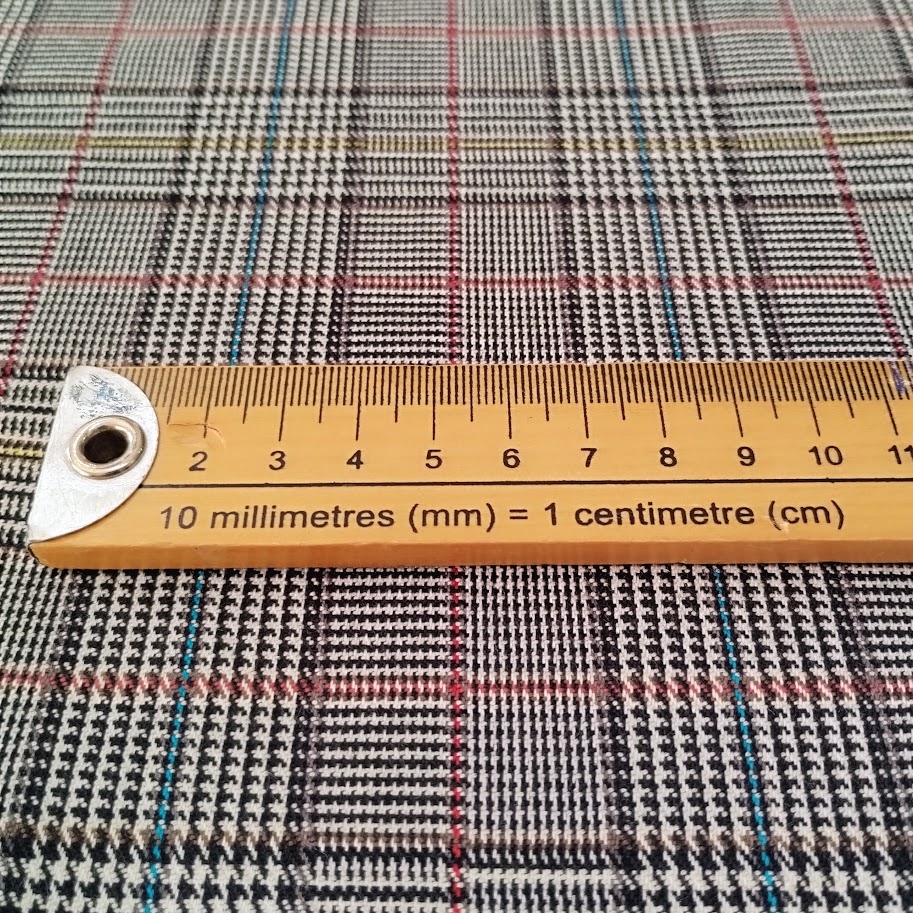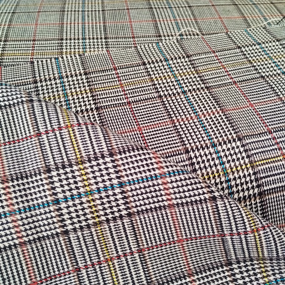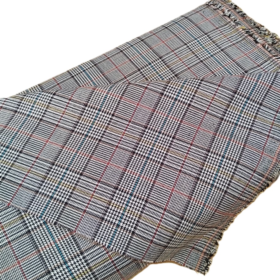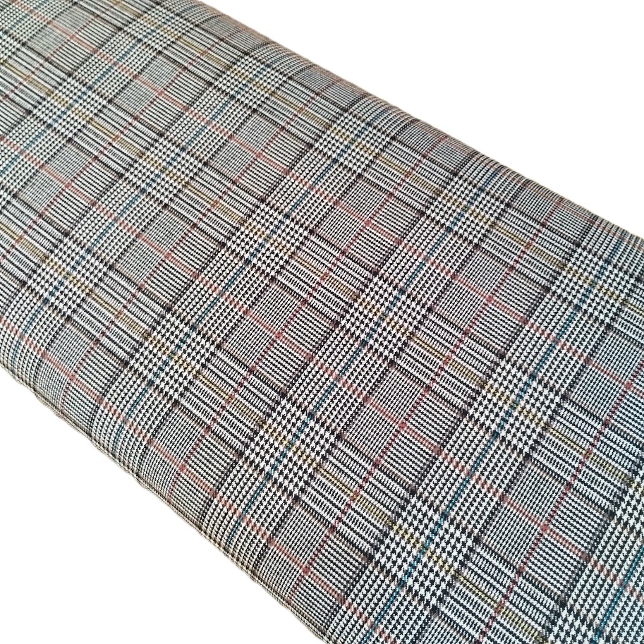 El cuadro escocés gris es un infalible, y esta variante se luce aún más gracias a esas líneas multicolor que brindan carácter sin exagerar. Perfecta para camisas, vestidos o chaquetas que buscan elegancia con personalidad.
